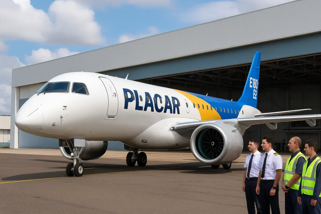 O que aconteceu: A Placar Linhas Aéreas recebe hoje seu segundo Embraer E190-E2 (MSN 19020016), agora com matrícula brasileira PS-YVL,