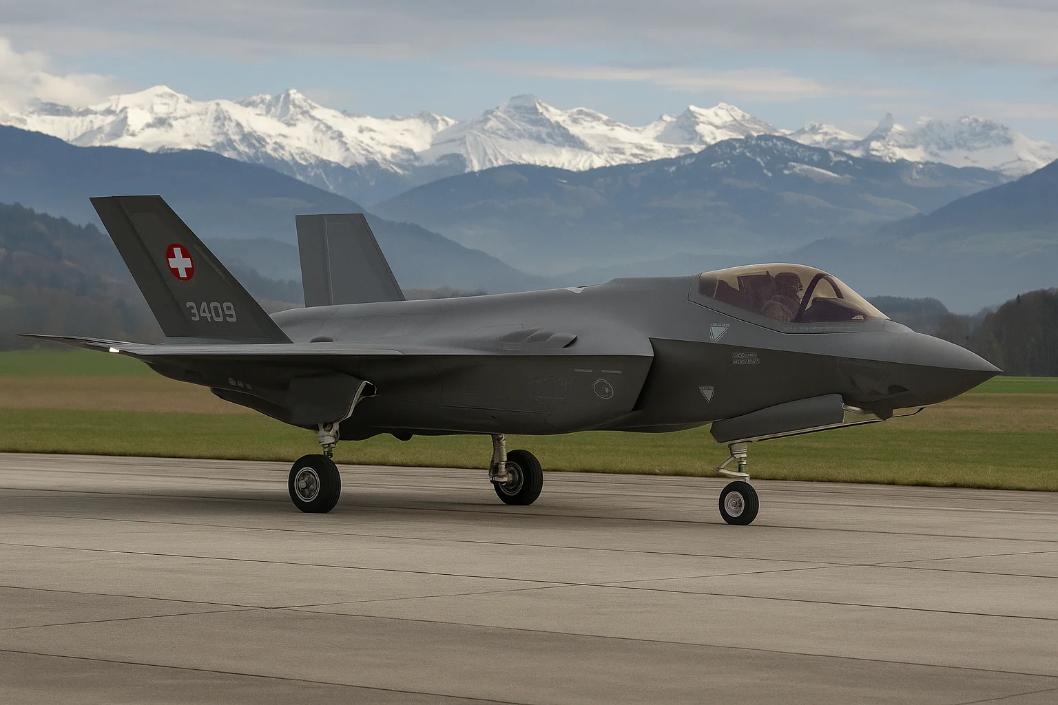 A decisão foi tomada após reunião do gabinete federal suíço. Em 2021 a Força Aérea Suíça havia escolhido o F-35A (36 unidades) para substituir os McDonnell Douglas F/A-18C/D Hornet e os Northrop F-5E/F Tiger II; o contrato foi anunciado como preço fixo de 6 bilhões de francos suíços (cerca de US$7,4 bilhões na época).